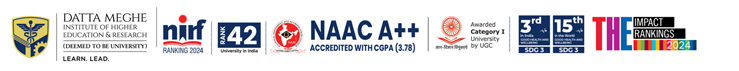 Nestled in the heartland of India, in a sprawling 125-acre campus, Datta Meghe Institute of Higher Education & Research (Deemed to be University) is home to academic excellence in Engineering, Medicine, Dentistry, Nursing, Physiotherapy, Ayurveda, Pharmacy, Management, Allied Sciences, Allied Health Sciences, Epidemiology, Online Distance Learning & Virtual Learning. As a torchbearer of excellence in Higher Education, the University has strengthened its credentials from Accrediting bodies by being ranked 39th among the Universities in NIRF & an 'A++' Accreditation (Fourth Cycle) by 'NAAC' in 2023. It has also Category-I Deemed to be University status under UGC for Categorization of Universities for Grant of Graded Autonomy Regulations 2018. The University is also acclaimed for its Quality Education & Research Publications and has secured many eminent awards.